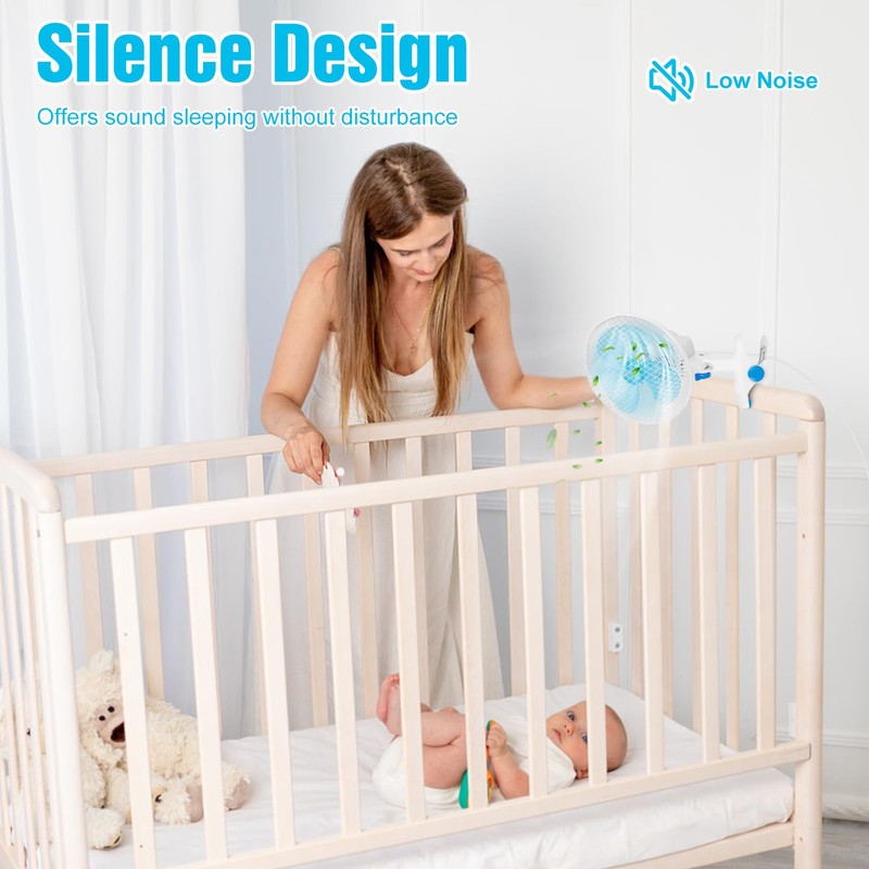 - 【Low Noise】Our fan has a low noise design, suitable for babies sleeping in bed. It is equipped with a safety fence to keep fingers and other objects at a safe distance from the moving blades when the fan is running. The protective fence adds extra safety.