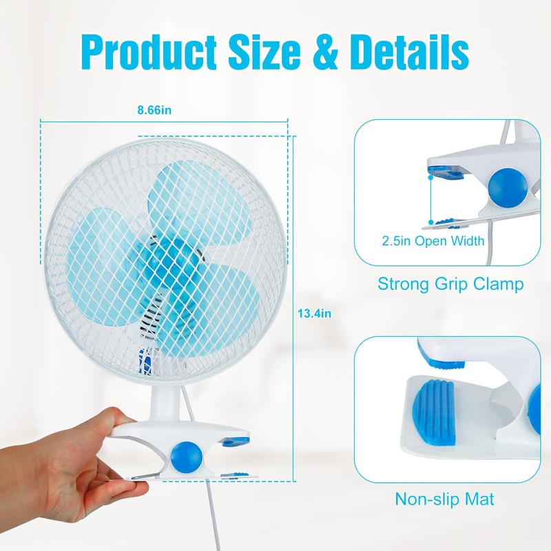 Wilytyres Clip On Fan Oscillating, 2 Speeds Quiet Clamp Fan, Auto Shaking Fans with Clip for Bed, Desk, Office, Home, 3.94FT Cable Cord(8.66in x 13.4in)