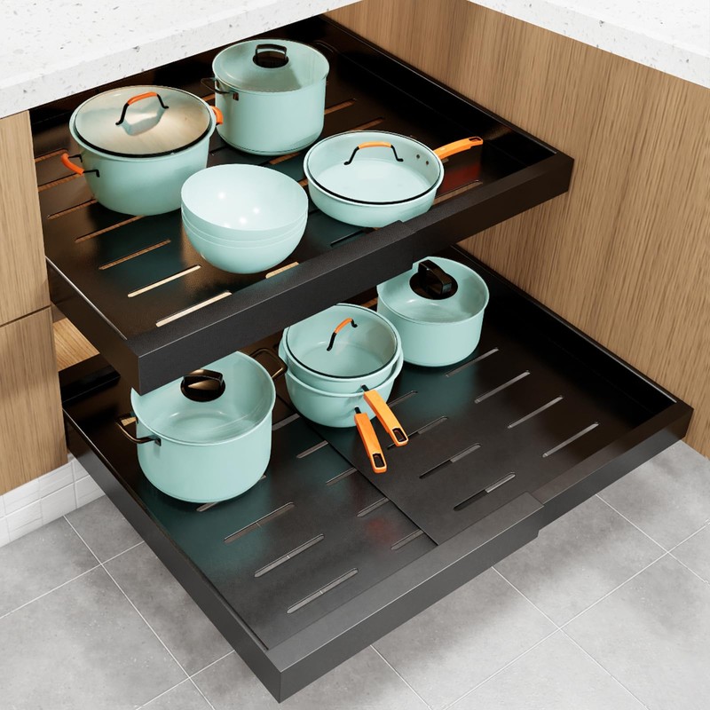 - 【Durable And High Quality】The pull-out cabinet organizer made of heavy-duty metal with an extra smooth sliding system to accommodate a large number of pots and pans, durable enough to handle everything you put on it. It has an amazing weight capacity of 77 lbs.