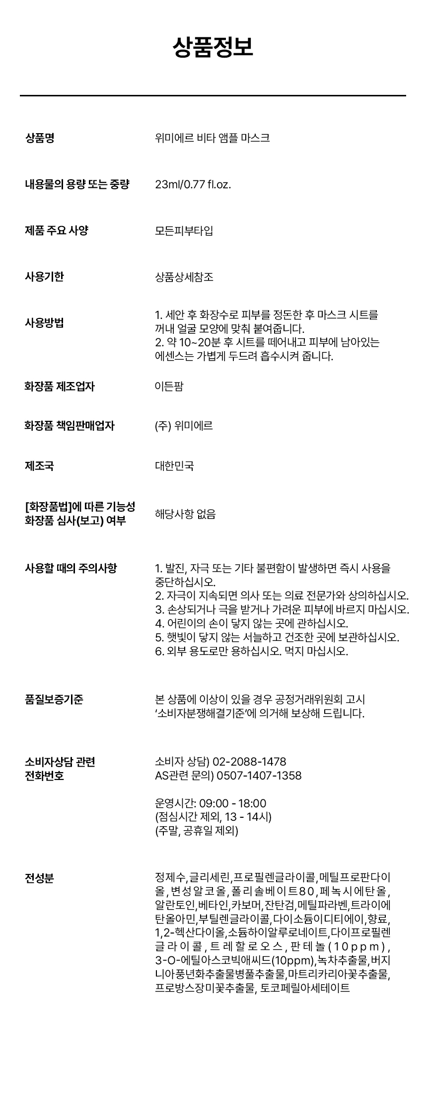Wimier Vita Ampoule Mask 10 sheets _B / 위미에르 비타 앰플 마스크 10매 B
