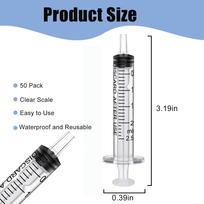 - ??Warm Tips: This plastic syringe is for industrial use only. The package contains 50 plastic syringes of 2ml, enough for use or replacement to meet your daily needs.