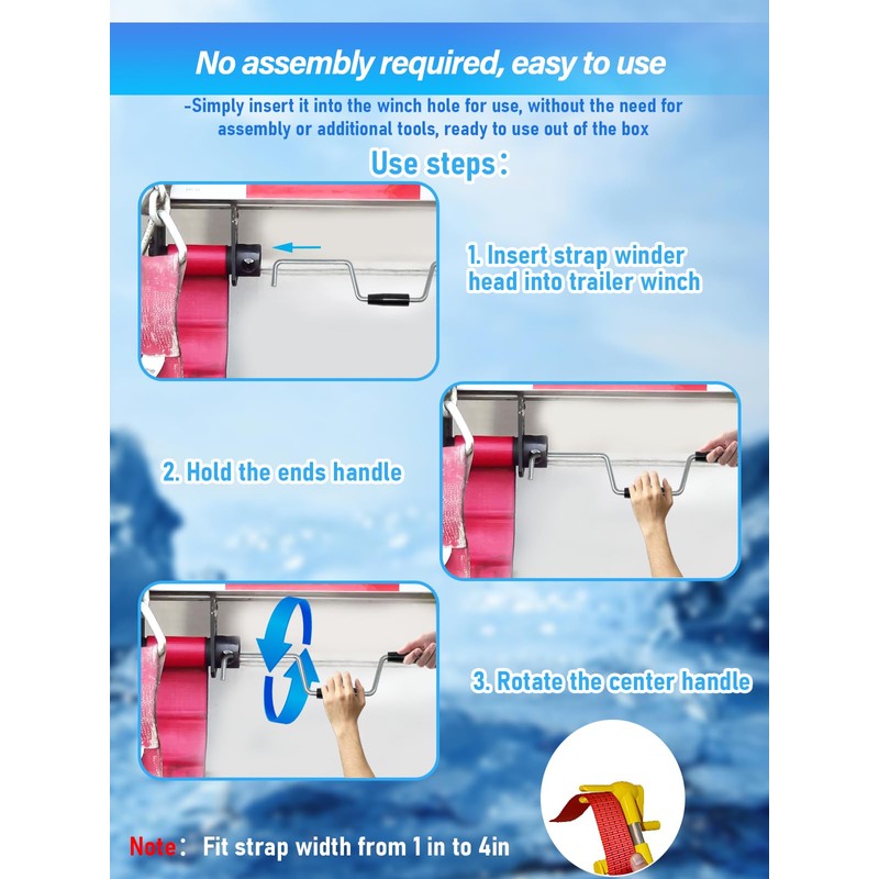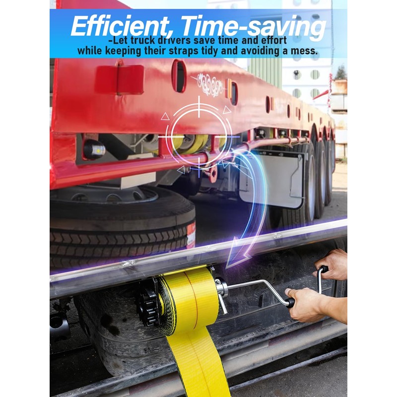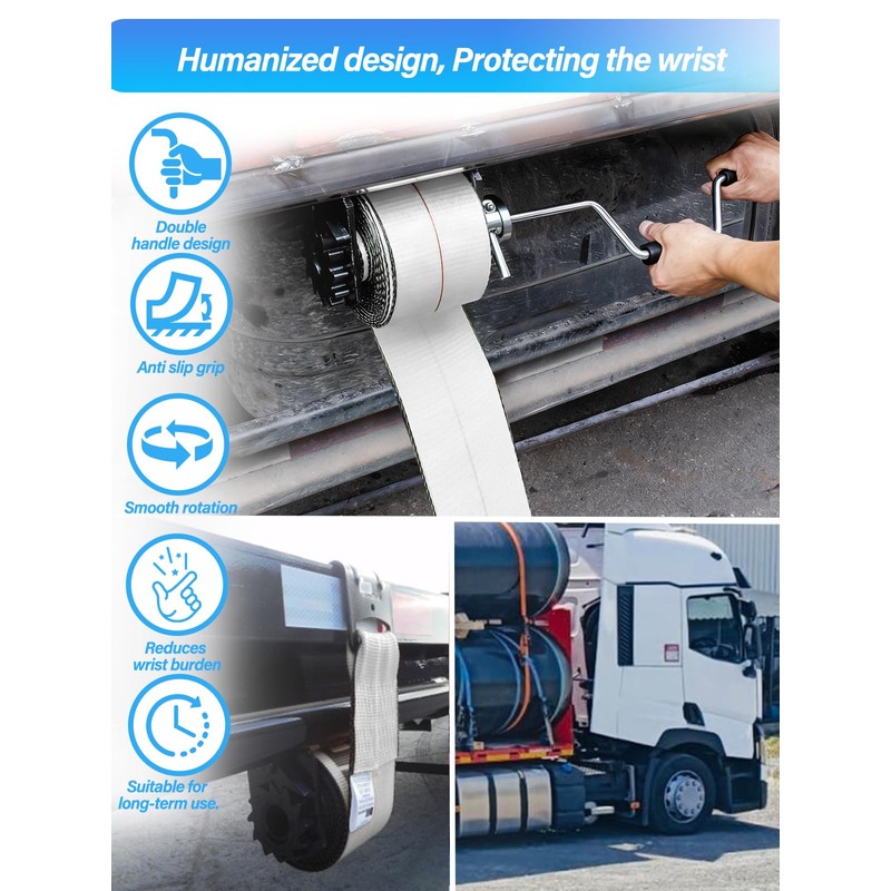 Quality Life Heavy Duty Winch Strap Winder for Flatbed Trailer, Solid Steel Winding Straps Roll-up Hand Roller, Tie-Downs Winch Straps for Truck Trailer 1PCS