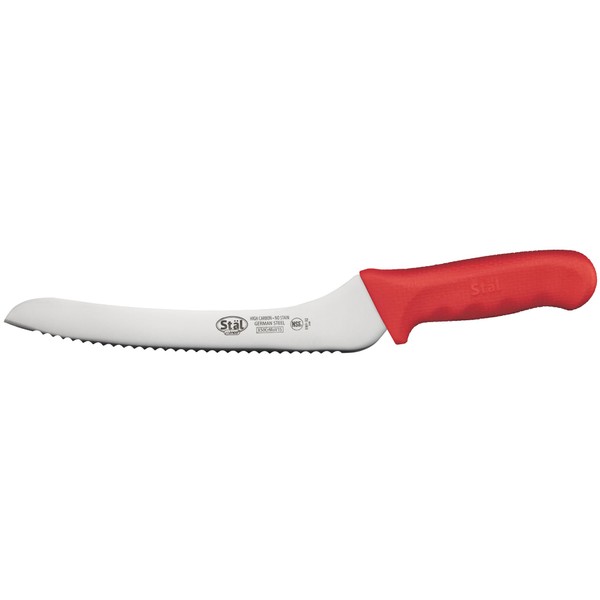 Winco 9" Commercial-Grade Serrated Bread/Pastry Knife with Offset Handle, Red