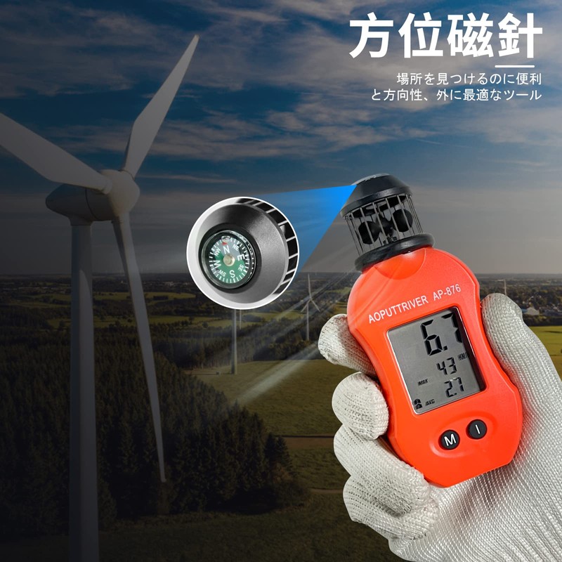 Wind Gauge Air Flow Meter, Cup Type, Compass AP-876, Small Handheld Anemometer, HVAC Drone, Wind Direction, Outdoor, Auto Off, Japanese Instruction Manual Included (English Language Not Guaranteed) - 2022 - Orange