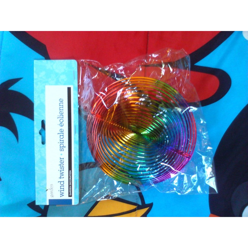 WIND TWISTER DECORATION CIRCLE Watch this gorgeous multi-colored Wind Twister spin in the wind. Become mesmerized as this three-dimensional Circle Shaped decoration puts on a color show! Approx. Dimensions: 6" Diameter x 3" T.