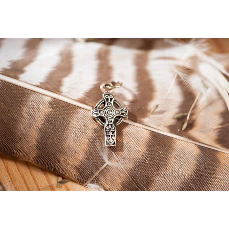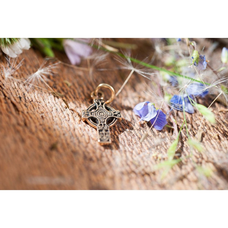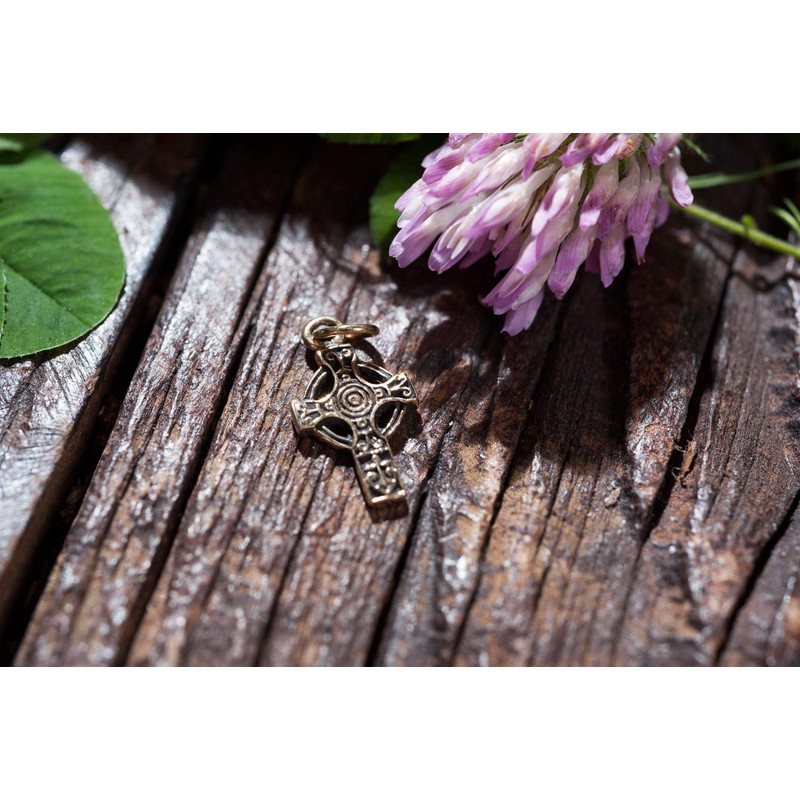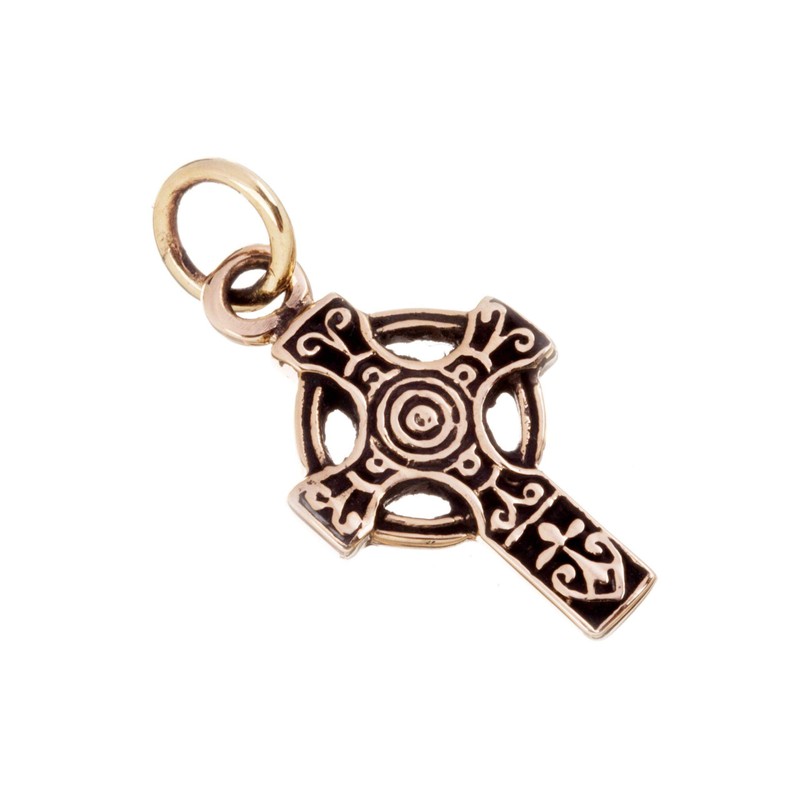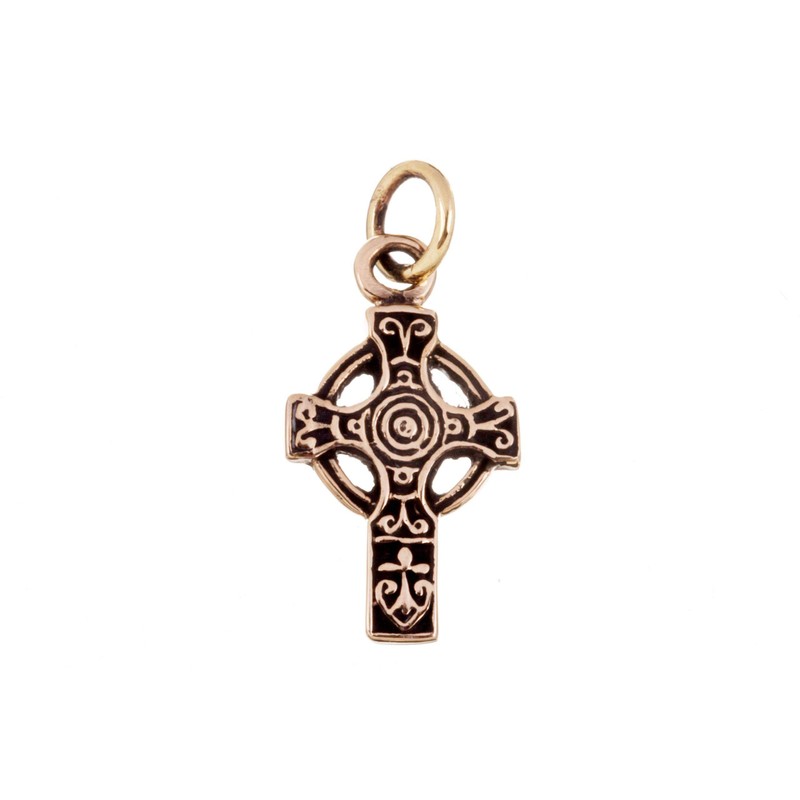A small Celtic cross with fine embellishments as a jewellery amulet, made of bronze.