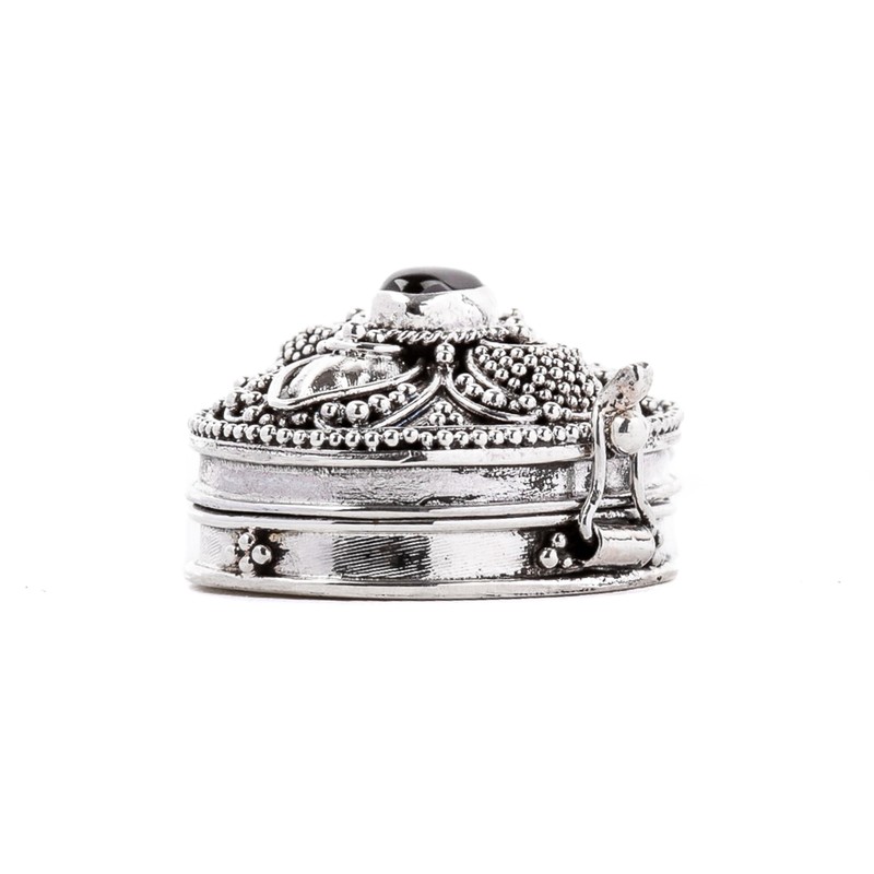A precious 925 sterling silver locket resting in its centre is a genuine black onyx stone.