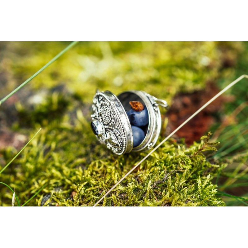 Windalf Dana Photo Locket 3.2 cm Medieval Picture Locket with Onyx & Secret Compartment Bohemia Handmade 925 Sterling Silver, Fabric, Onyx