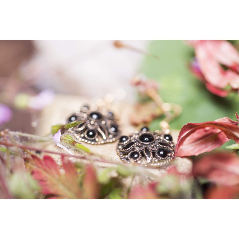 - Medieval earrings full of playful details, decorated with magical onyx pieces