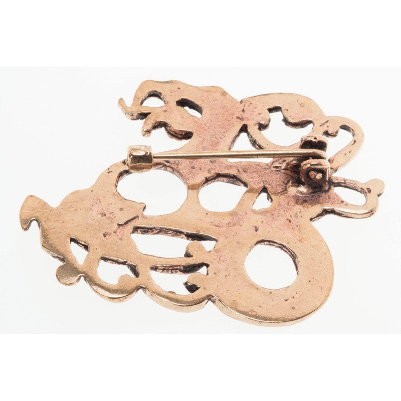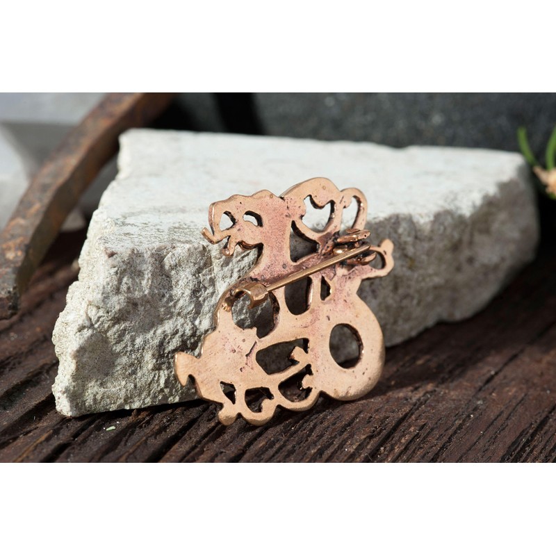 - Height: 3.8 cm, width: 5 cm, depth: 0.9 cm, weight: 12.8 g, needle length: 3.2 cm, material: high-quality bronze