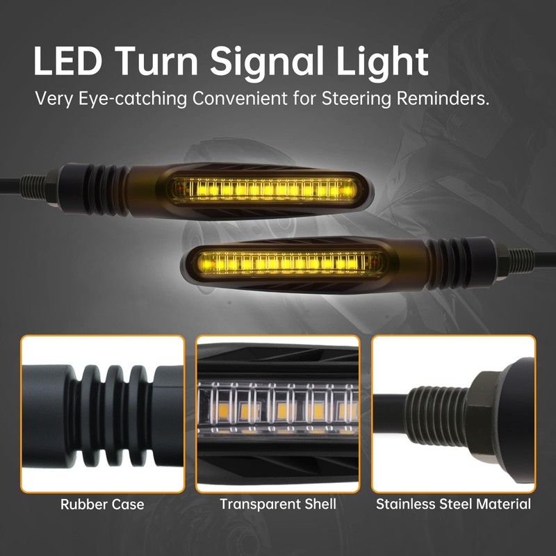 - Sequential Turn Signal Technology for Improved Road Awareness. The tail tidy light utilize advanced sequential LED technology, producing a flowing light effect that stands out more effectively than traditional blinker. This eye catching animation alerts drivers behind you sooner, reducing the risk of rear end collisions or misinterpreted signals. Meanwhile, the license plate light LEDs ensure uniform illumination, keeping your plate visible and legible under all lighting conditions, further contributing to a safer riding experience.