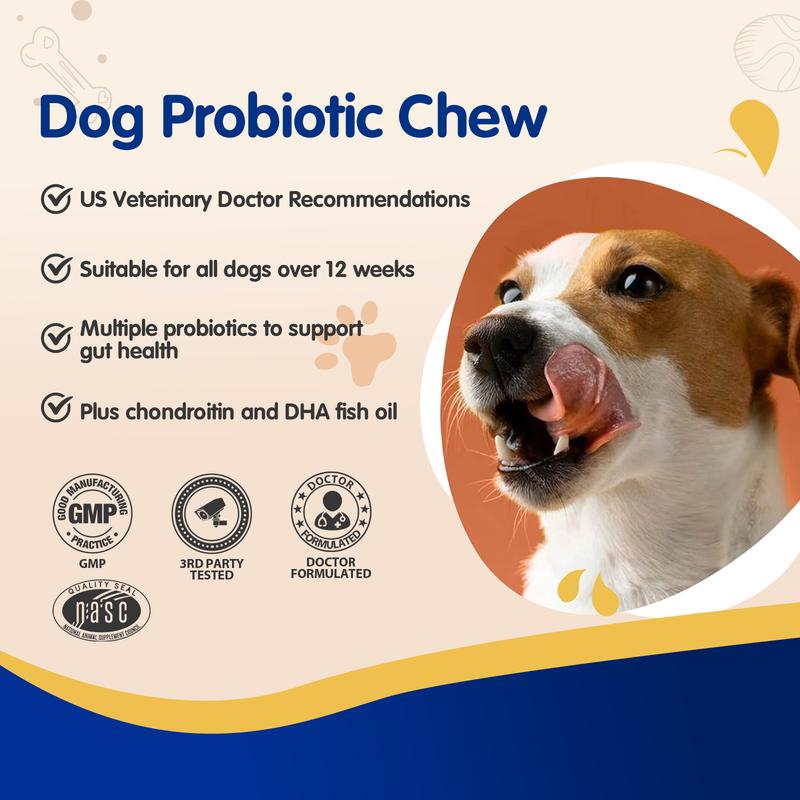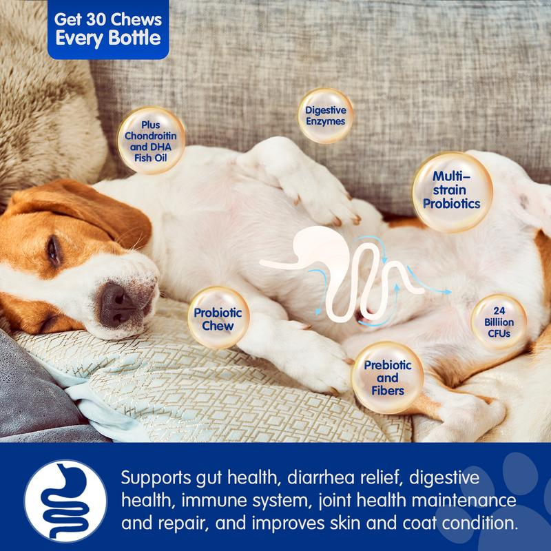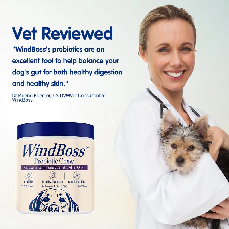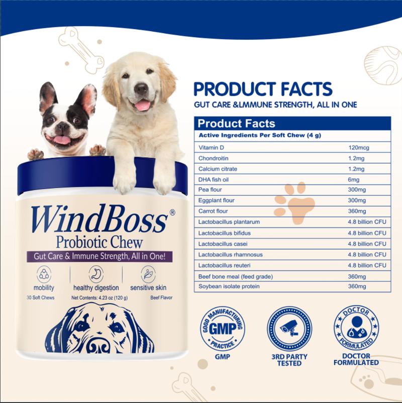 WindBoss Dog Probiotics for Skin & Gut Health Soft Chews - 30 Beef Flavor Chews with Chondroitin & Omega-3 for All Ages, Supports Digestive & Skin Health - Specification: Standard Shipping 2