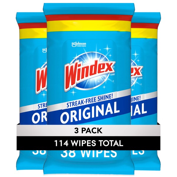 Windex Glass and Surface Pre-Moistened Wipes, Original, 38 Wipes, 3 ct