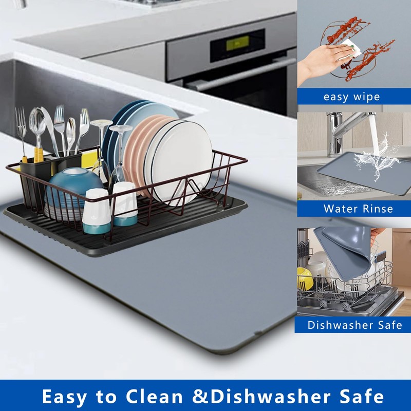 - Multi-purpose :The silicone dish drying rack mat is not only perfect for coffee maker ,water dispensers,ice cream machines,dish washing racks,tableware,kitchen countertop, but also good as a baking mat, kitchen sink mat , washing machine counter mat ,dog feeding mat ,craft mat for your children and so on .