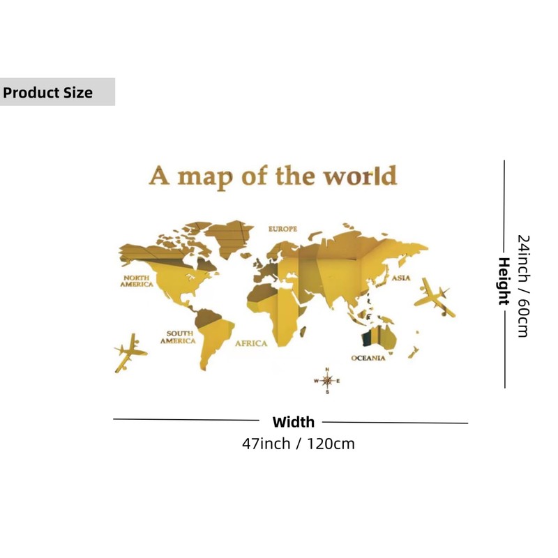 - 【Features】 --The acrylic world map wall decal art thickness is about 2 mm, mirrored effect, Smooth, lustrous surface, showing 3D effect. The stickiness is very good, it can maintain super strong force on the wall.