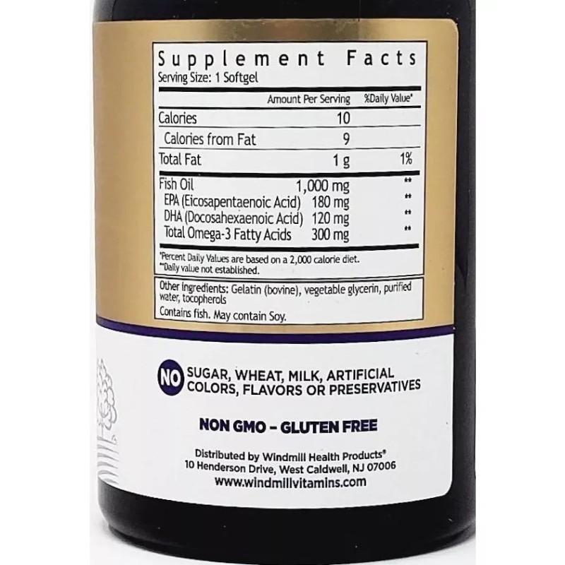 WINDMILL NATURAL VITAMINS Omega 3 1000mg Con Epa Dha Windmill 180 Softgels S...
