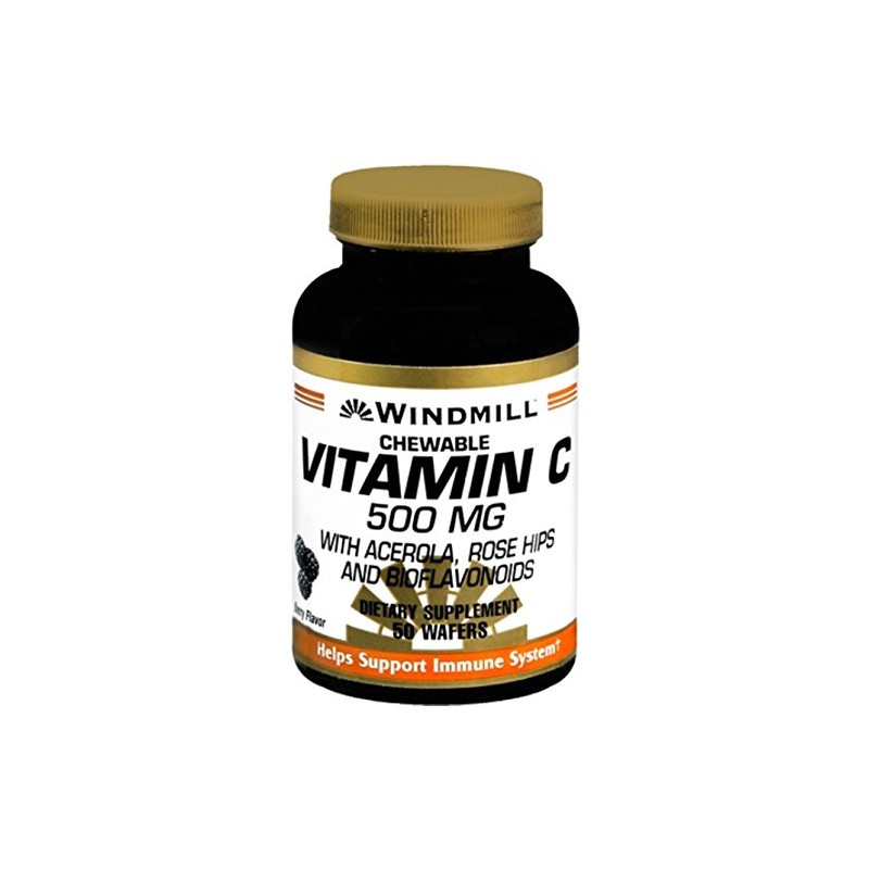 (Generic:Vitamin C) Windmill vitamin C 500 mg dietary supplement chewable wafers help support immune system.