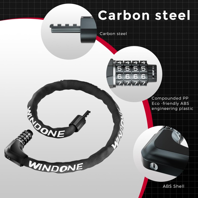 Windone Bike Chain Lock, 4 Digit Combination Heavy Duty Anti Theft Bicycle Chain Lock, 3.2 Feet Long Security Resettable Bike Locks for Bike, Bicycle, Motorcycle, Scooter, Door, Gate, Fence