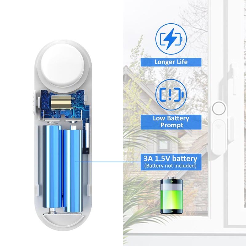 - Wire-Free: Powered by 2 AAA batteries (not included), this door open alarm is wire-free, offering quick installation and flexibility without the need for complicated wiring.