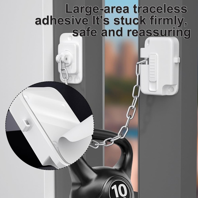 Window Lock Children, Pack of 2 Window Lock Chain, Fridge Lock, Child Safety Window, Window Locks, Door Chain, No Drilling - Child Pet Safety Cabinet Lock for Childproof