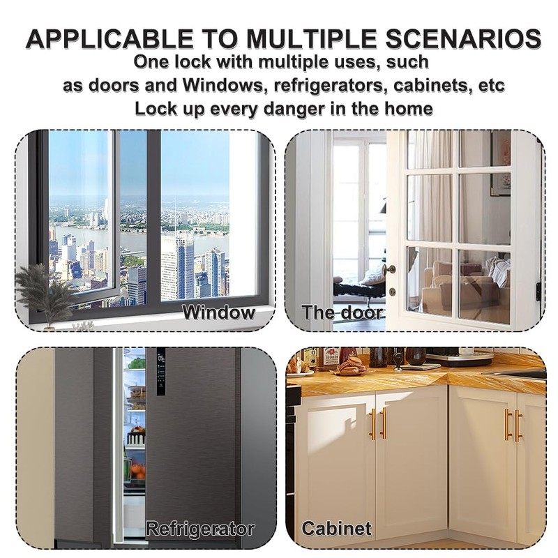 - Wide range of applications: these baby safety locks can be used as a fridge lock, toilet lock, cabinet lock, etc.; ideal for many windows, cabinets, drawers and doors to prevent your little adventurer or cute pet from going to dangerous places. It can also be used to push down the toilet lid and seal the doors of microwaves, refrigerators and other appliances.