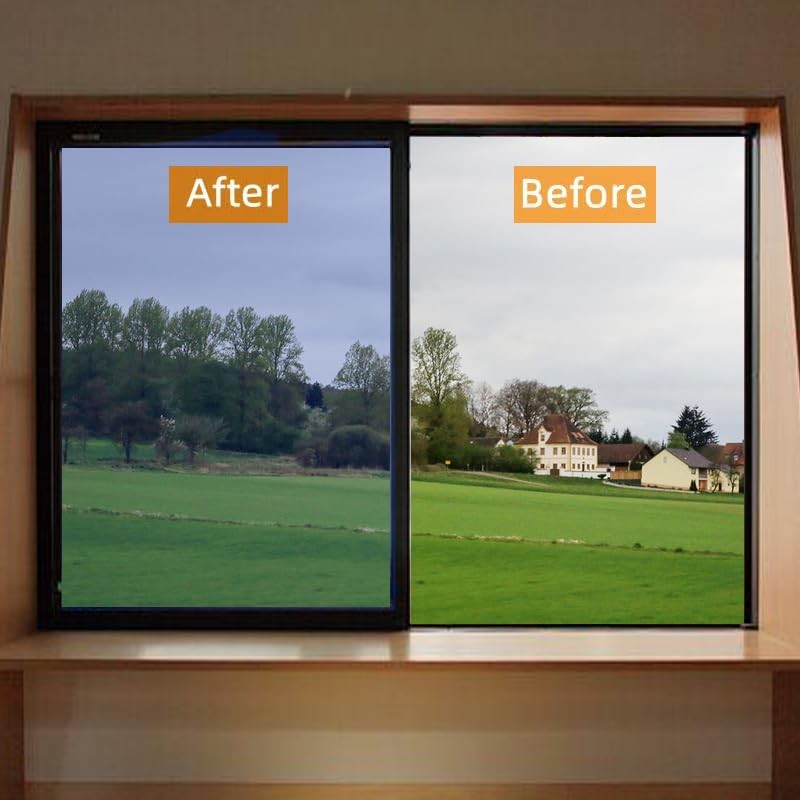 • 【PRIVACY PROTECTION】Attention about window film privacy, there's different privacy effect between daytime and night. The one-way window film provides great privacy during daytime only and outside glass shows mirror effect. As the outside light becomes weaker, the mirror effect of outside glass will disappear gradually and outside people can see inside . When the inside light is stronger than outside, the mirror effect will be reversed. Remember to draw curtain during night.