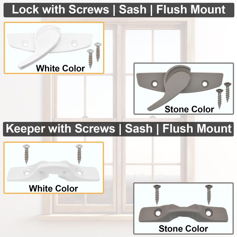 - 【Easy To Install】: White sash lock kit includes lock, keeper and screws, can be flush mounted in the centre of the sash and secured with two screws each. Rotate 180° to attach the lower window to the top window