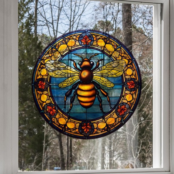 Window Stickers Bee Static Glass Clings Window Decals Animal Reusable Home Decor(Round)