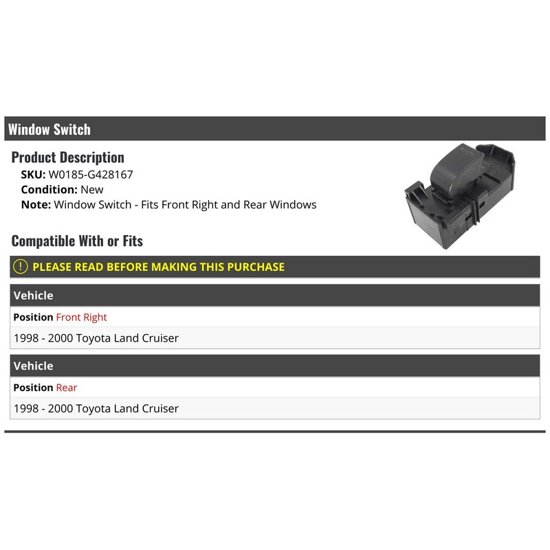 Window Switch - Compatible with 1998-2000 Toyota Land Cruiser