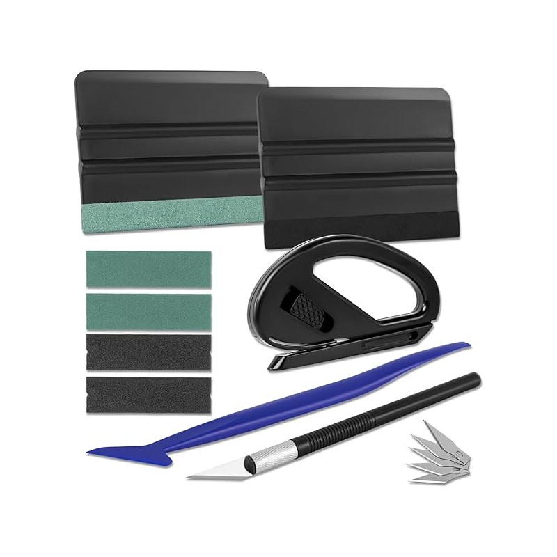 Window Tint Kit, Profession Car Wrap Kit with Felt Squeegee and Felt Replacements, Craft Knife and Blades, Safe Vinyl Cutter, Micro Squeegee for Vinyl Wrap Tools Tint Tools