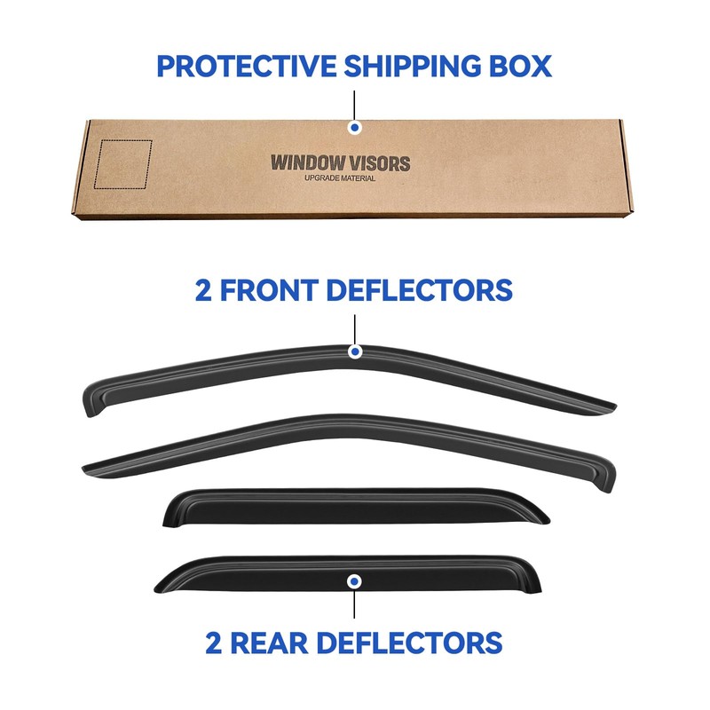 - 【Easy Installation】Outside Mount Style. No drilling or special hardwares required. Test fit the visors first to make sure it's the right model before you tape them on.[NOTE: Don't wash your car 24 hours after installation.]