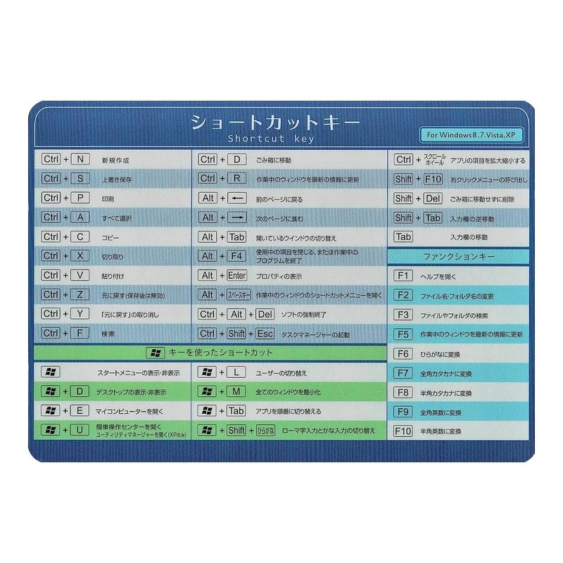 Windows用 ショートカットキー表 マウスパット