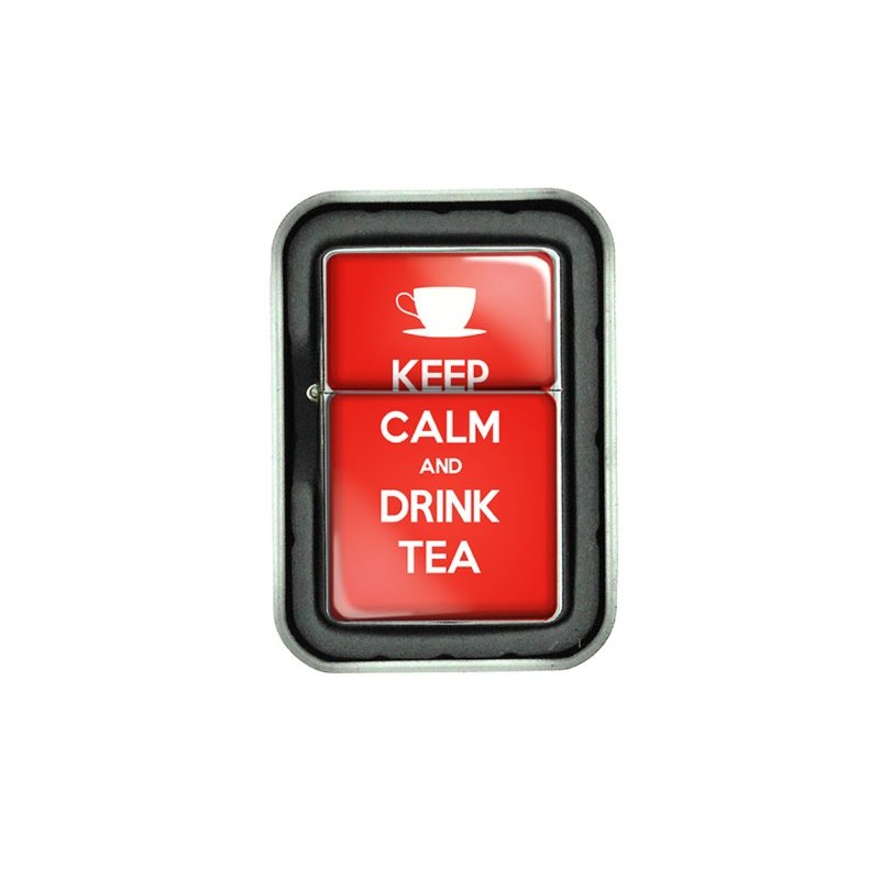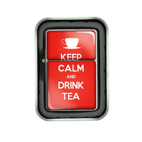 Windproof Refillable Oil Lighter with Tin Gift Box Keep Calm and Drink Tea Design-018