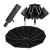 Windproof umbrella - thanks to reverse folding without drips - small compact women's and men's umbrella with automatic on - with reflectors on the edge - extra stable thanks to 12 ribs.