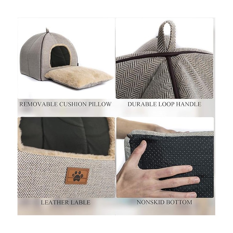 - 【STRONG CONSTRUCTION】This cat tent is made of high density foam and 100% microfiber outer material to provide a comfortable snuggle place for pets - 3D microfiber is used as padding, which is fixed in the middle of the padding seams and distributed More even, evenly filled, provides very good support and elasticity.