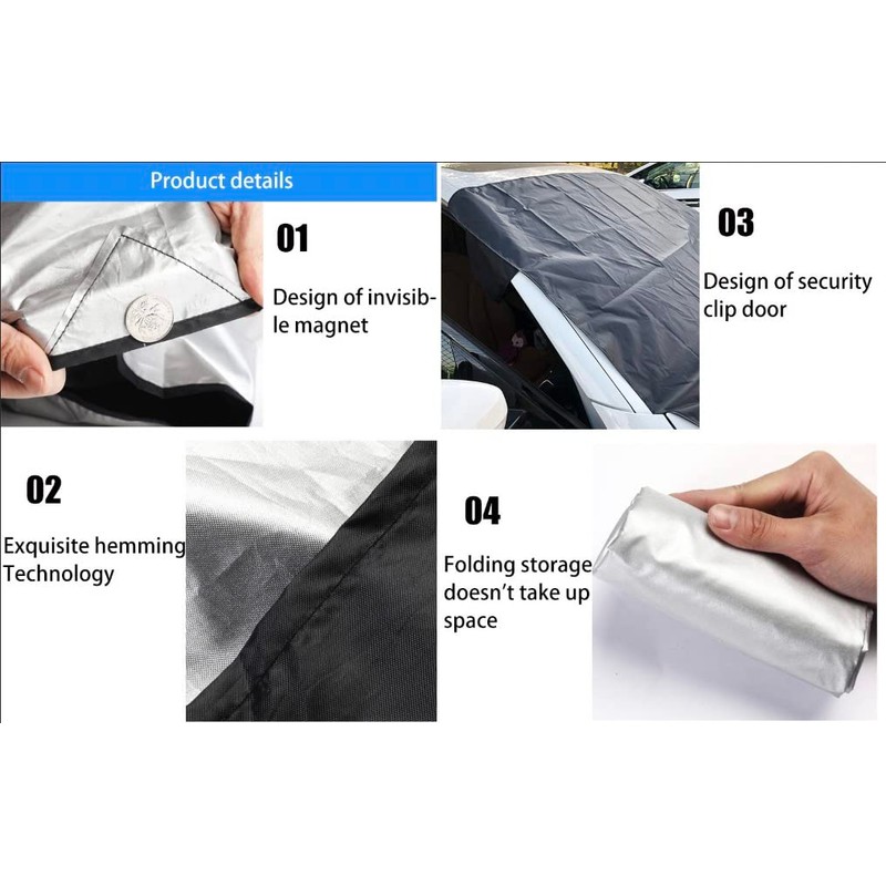 - Double-sided design: Choose the silver side in summer. The Front Car Sunshade Cover will help reflect harmful UV rays and get lower temperatures,choose the black side in winter, the windshield cover for ice and snow can absorb heat and melt ice and snow.