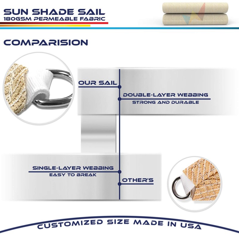 - 16ft PE ropes and Stainless steel D-rings in each corner make the sun shade sail easily attached to any sturdy connection point to provide sun protection and personal design where you need it.