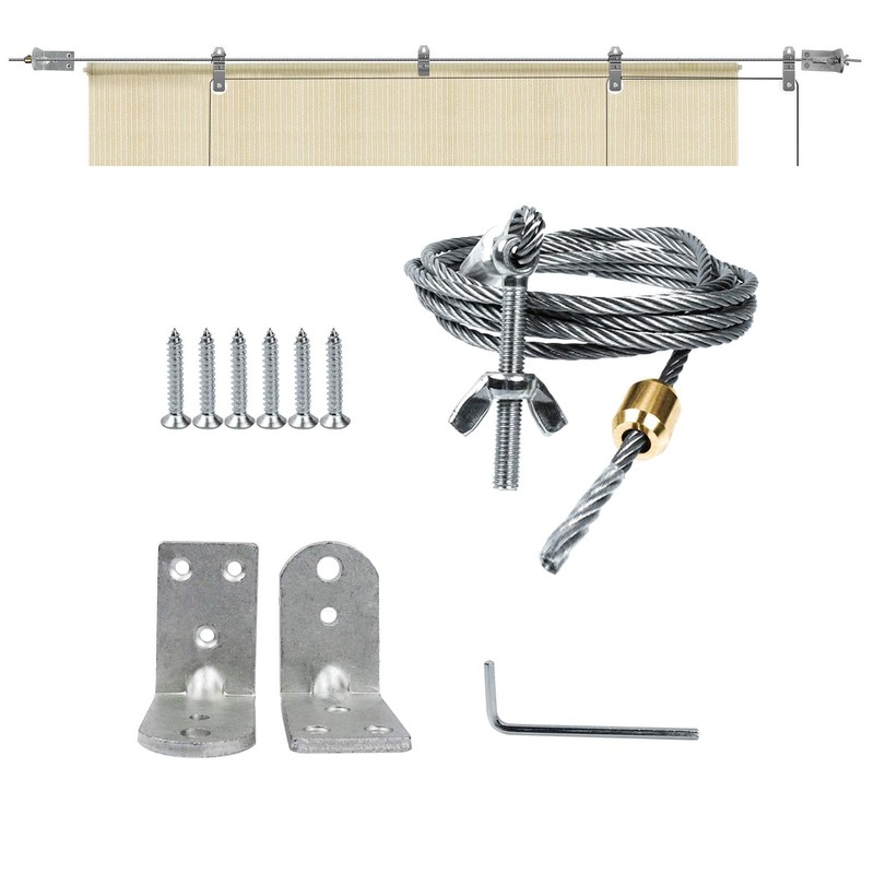 Windscreen4less Outdoor Wire Suspension Hardware Kit 6ft M3 Wire Rope Cable for Hanging Roller Pull Shade Curtains Clothes with Corner Bracket Wing Nut Set Screw for Patio Deck Backyard