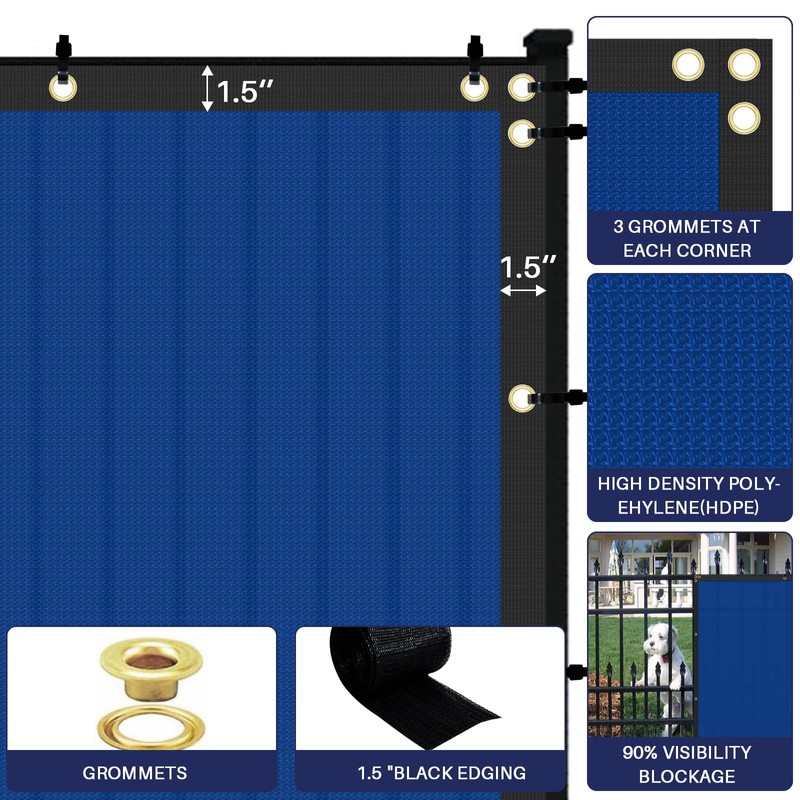 Windscreen4less Privacy Fence Screen Heavy Duty Windscreen Fencing Mesh Fabric Shade Net Cover with Brass Grommtes for Outdoor Wall Garden Yard Pool Deck, 6'x91' Blue