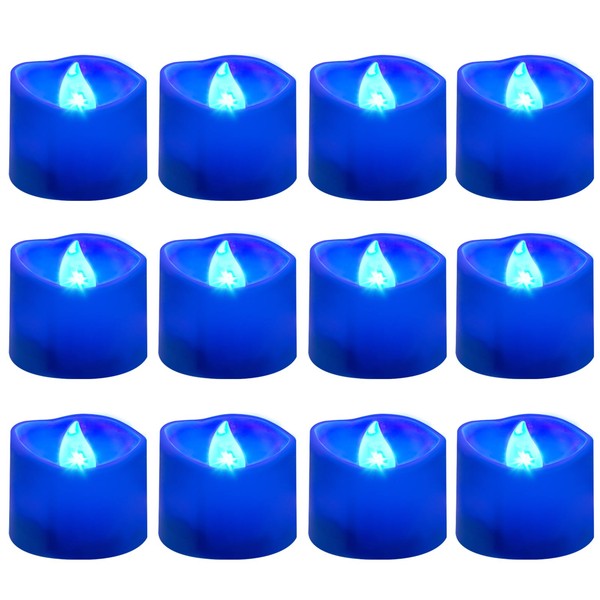 Windshell Blue Flickering Flame Tealight Candles with 6H Timer (No Remote), Battery Operated LED Flameless Tea Lights, Pack of 12