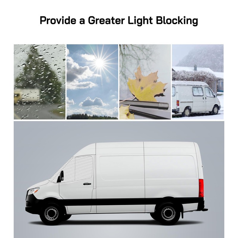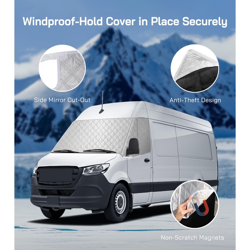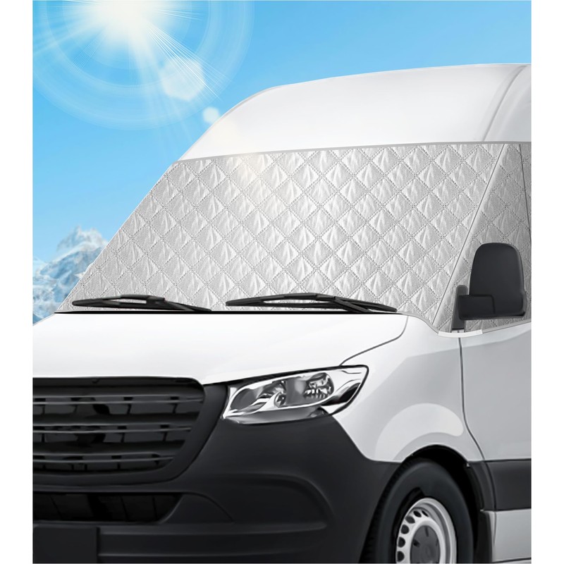 VANNCAMP Windshield Cover for Mercedes Sprinter 2007-2025 Motorhome, Front Window Sunshade, Class B Windshield Cover for UV Protection & Privacy Shield, White with Mirror Cutouts