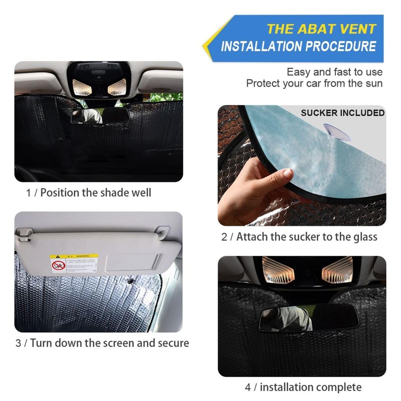 The sunshade features a cleverly designed accordion fold for quick and easy storage. Simply collapse and secure it with the elastic band for space-saving convenience. For added stability, the product comes with four tail-style suction cups that can be easily affixed to your windshield. To enhance their grip, moisten the suction cups with water before use; they can be quickly removed with a gentle tug on the small holes.