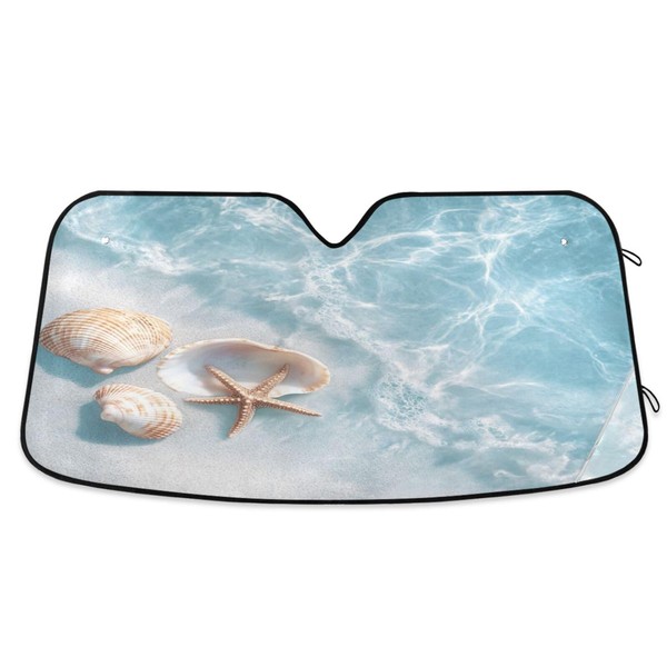 Windshield Sun Shade Blue Beach Shells Car Sun Shade for Front Windshield Foldable Sunshade Visor Protector Blocks UV Rays Keep Your Car Cooler