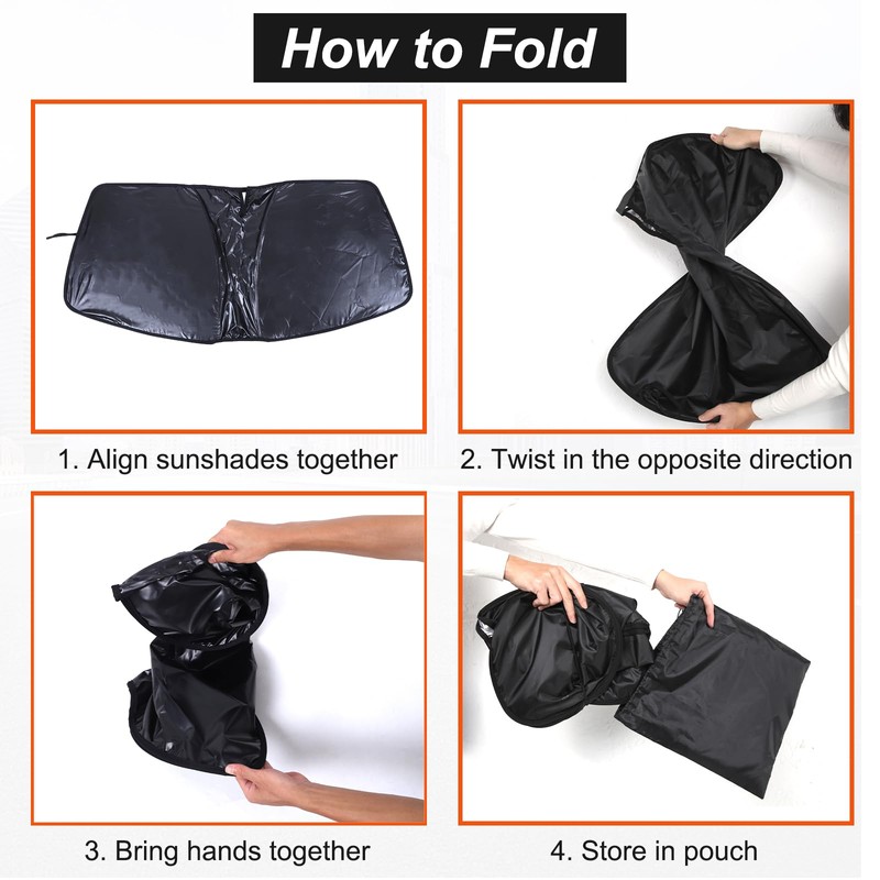 - 🌞[Keep your vehicle cool]: This car sunshade windshield is specially designed for your vehicle interior to be cool and comfortable. The reflective material blocks sunlight and heat, which not only effectively reduces the internal temperature of the car, saves air conditioner fuel consumption, but also prevents center console accessories from fading and cracking.