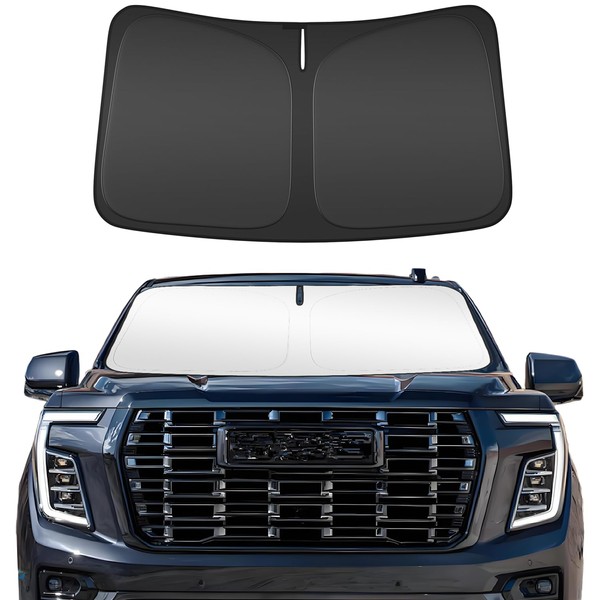 - 【 Perfect Fit】This windshield sun shade is specifically designed for GMC Yukon XL 2021-2025 . It fully covers the windshield with no gaps, ensuring a 100% perfect fit. In hot weather, it performs exceptionally well, keeping your car cooler.