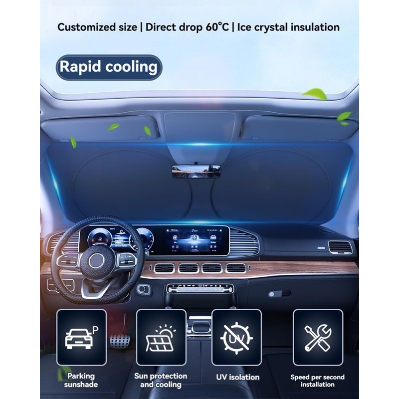 • ✔️The front window sunshade has been upgraded to make it easier to fold and store, making it smoother to use and store. It can be easily folded into a compact size in just a few seconds, paired with an open storage bag, saving storage space
