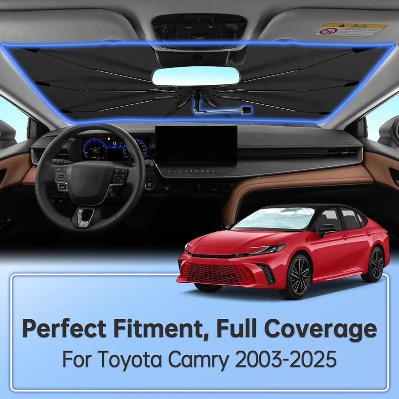 Windshield Sun Shade Umbrella for Toyota Camry 2003-2025, Foldable Car Sunshade for Front Window, Highly Reflective Windshield Sun Shield Visor for UV Protection, Keep Car Cool Accessories