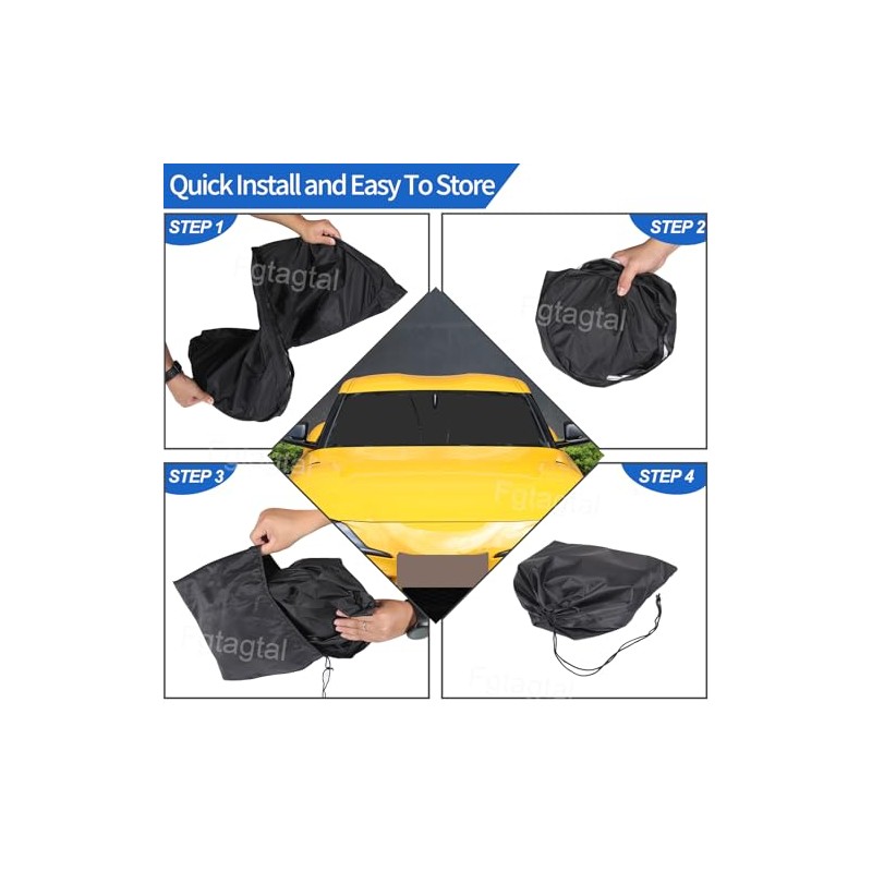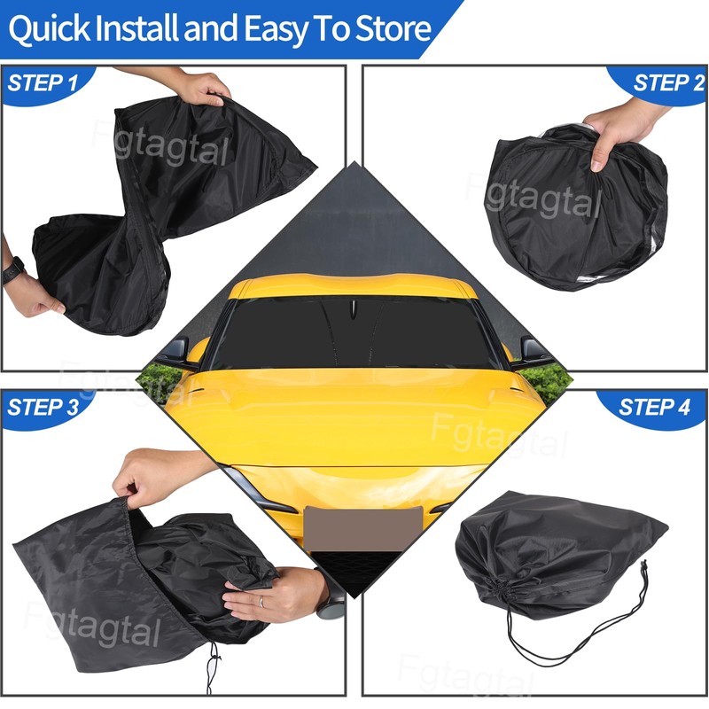 - 🌞QUICK INSTALL AND EASY TO STORE: Foldable reflective sun visor easy to install and use. Simply remove the visor from the pouch, unfold it and place it against the windshield. Windshield shade is come with a pouch, you also can easily fold and store it when not in use. It takes only minimum storage space in your car.