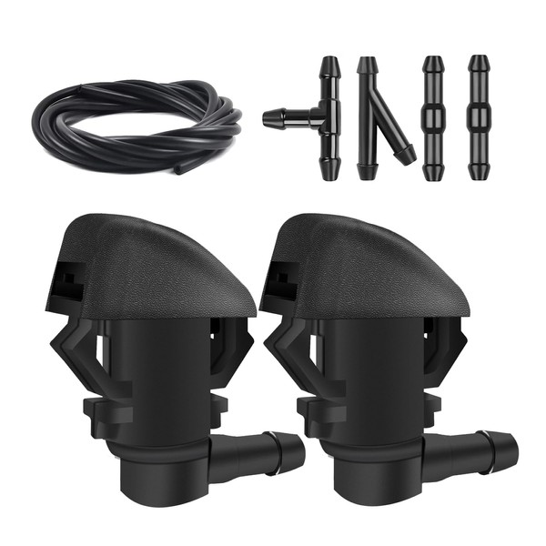 - [Package Content]:You will receive a total of seven items, including 2 windshield washer hood nozzles, 1 meter long windshield washer fluid hose, 2 two-way hose connectors (Type I), 1 three-way hose connector (Type T), and 1 three-way connector (Type Y).