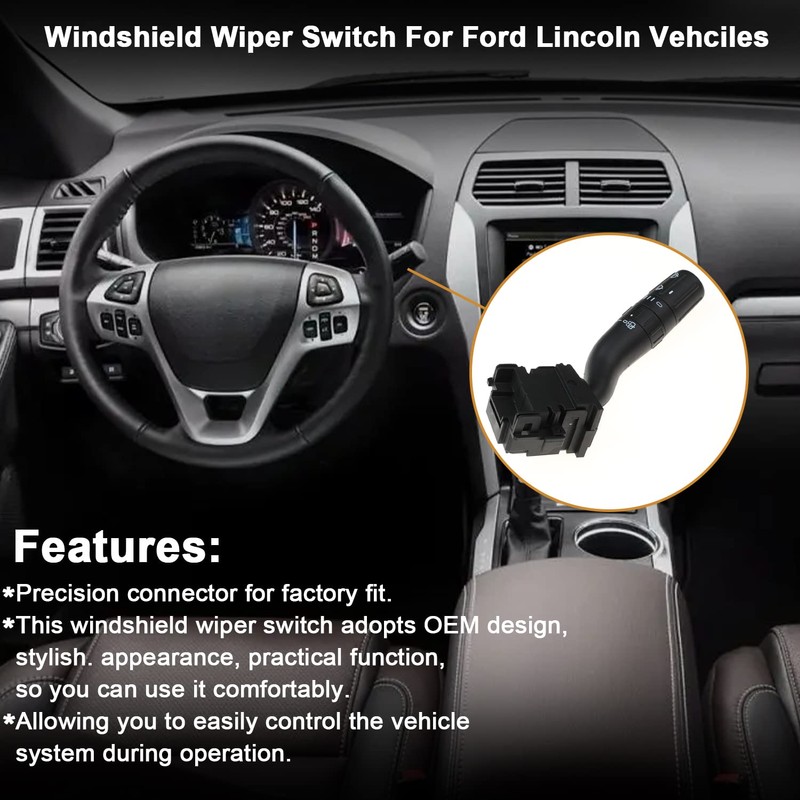 Windshield Wiper Switch For Ford Explorer 2011 2012 2013 2014 2015 2016 2017 2018 2019, Edge 2011-2015, Ford Police Interceptor Utility 2013-2018, Lincoln MKX 2011-2017 Replaces DB5Z-17A553-AB, SW7688